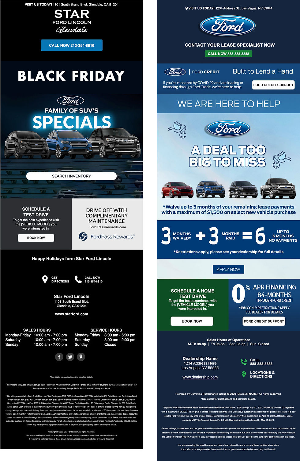 Some of my latest work involved working closely with Ford Corporate. Read below about my design philosophy for Email Marketing Campaigns. My philosophy can be applied to any business industry whether it's B2B or B2C. I have the ability to work with just about any ESP.